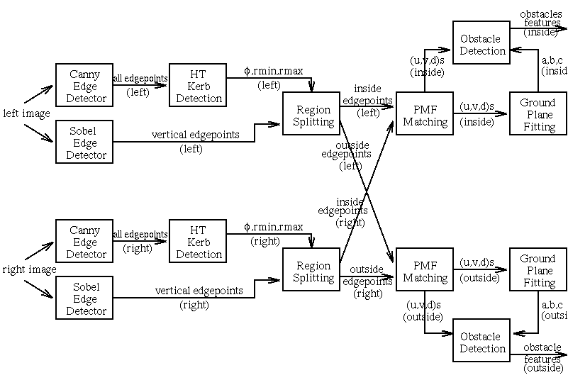 We do this for both images, provided that there are sufficiently many features on the ground. We then perform stereo matching and ground-plane fitting in the inside and outside regions individually, finally obstacle detection. The flow diagram in Figure 5 shows the integration of GPOD with kerb detection.